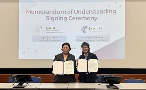 細胞農業研究機構(JACA)は、韓国のGyeongbuk Technopark Medical Covergence Textile Centerと、細胞性食品技術の開発・評価・安全な社会実装に向けた協力を目的とする覚書(MoU)を締結しました。韓国における細胞性食品の規制特区指定地域およびGyeongbuk Technopark Medical Covergence Textile Centerが運営する研究支援拠点の強みを活かし、日韓の連携を通じてアジアおよび世界規模での議論と産業発展を牽引してまいります。